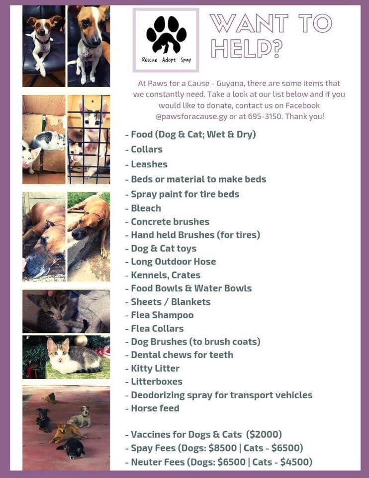 Please see image for the items that we regularly need. We also accept cash and have placed a number of donation boxes around popular Georgetown businesses.